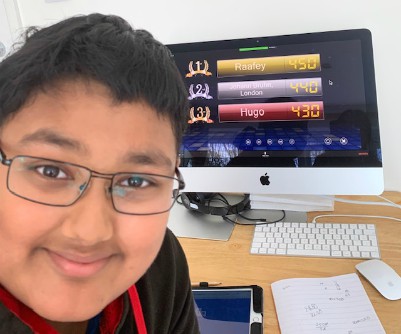 Raafey participated in the Maths online live quiz and came first after leading in the game throughout.Â
