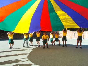 The Reception children enjoyed a PE lesson using the parachute this week. The task was to lift the parachute high above their heads on the count of three. Each child then took turns to run with the Gruffalo toy under the parachute to the other side. Fabulous fun as you can see by the Reception children’s faces.