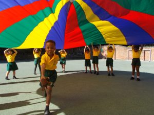 The Reception children enjoyed a PE lesson using the parachute this week. The task was to lift the parachute high above their heads on the count of three. Each child then took turns to run with the Gruffalo toy under the parachute to the other side. Fabulous fun as you can see by the Reception children’s faces.