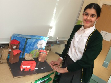 For their latest Art project Year 6 have been looking at artists who have depicted the city ( for example L. S. Lowry). They designed and made their own cityscape scenes. Here is Anika with her “Bus Scene” and Charlotte, Amrit and Saanvi with their “Snapshot of a City” group project. The detail is amazing ! Look out for the netball player and the woman holding a baby all made with great care in clay. They all worked so hard and are rightly proud of the finished results.
